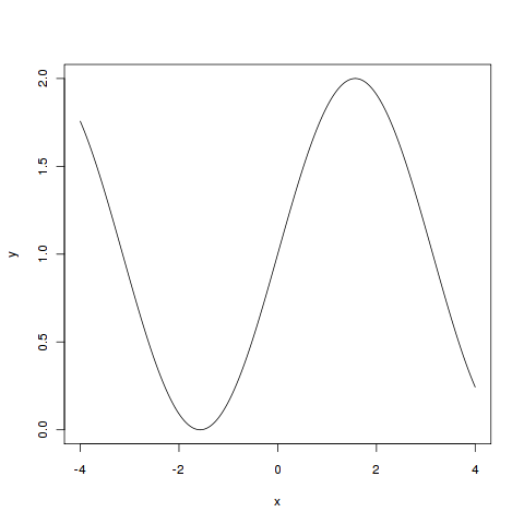 x = seq(-4,4,by=0.01) y = sin(x) + 1 plot(x,y,type='l')